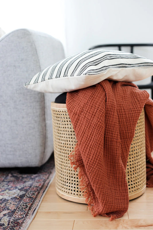 Jeté gaufré avec franges | Beige avoine