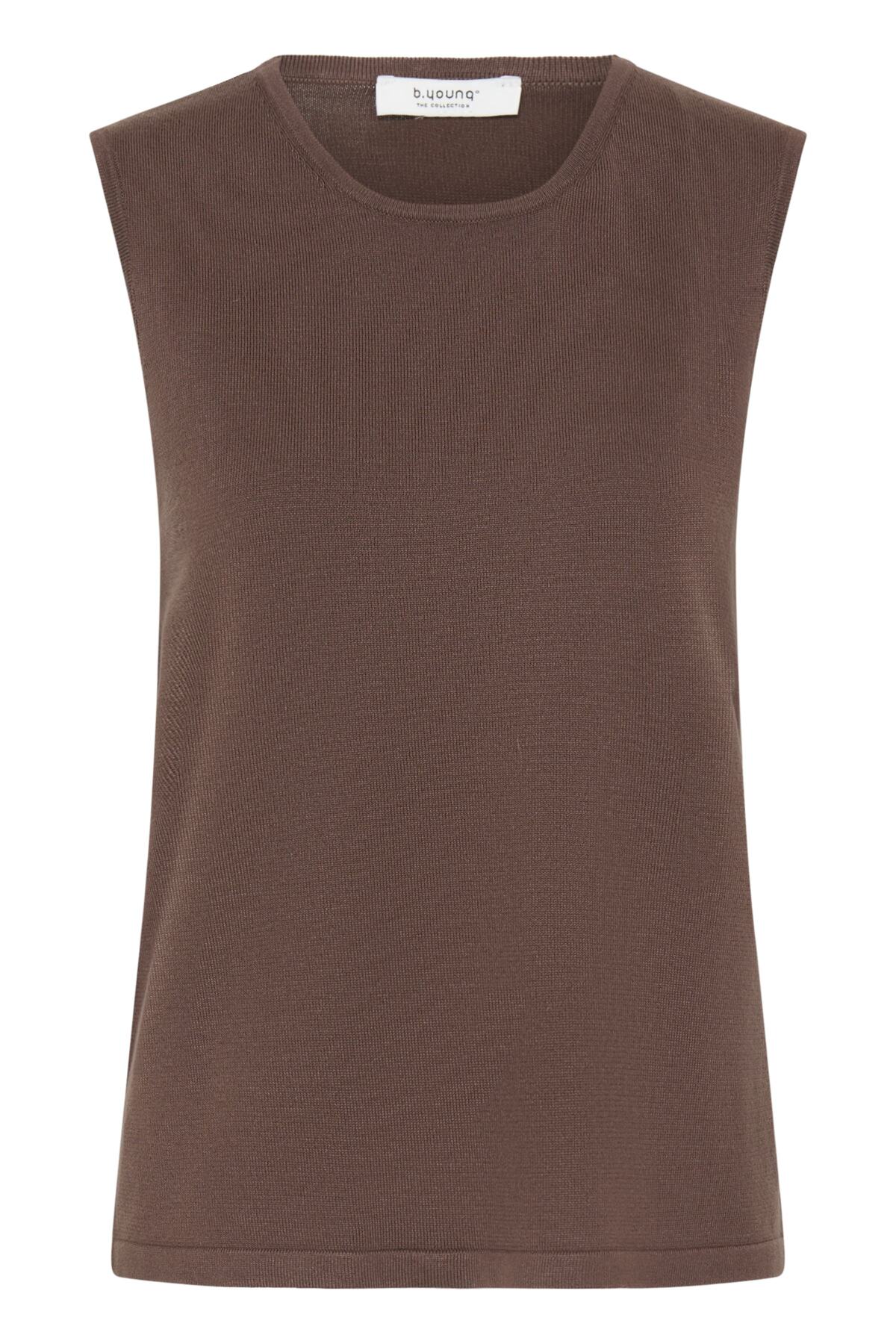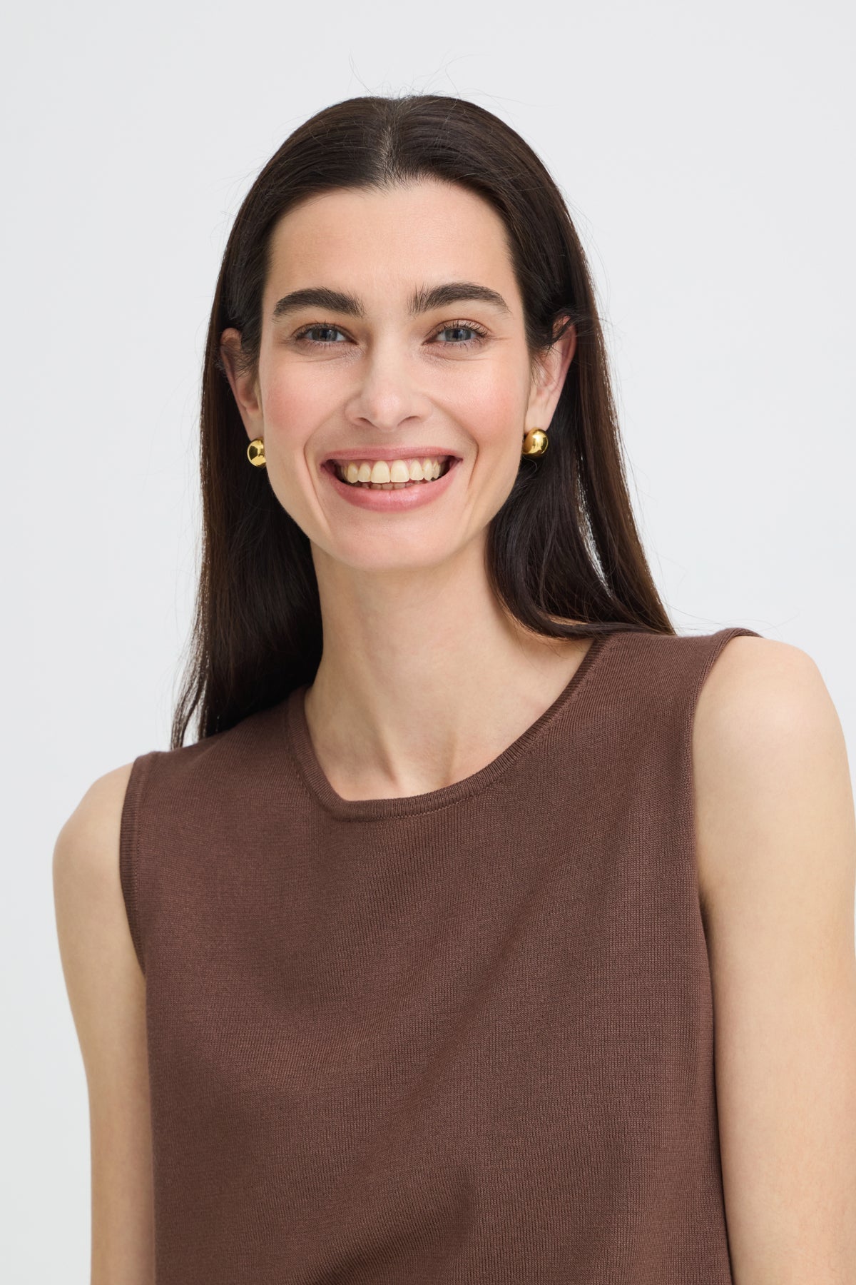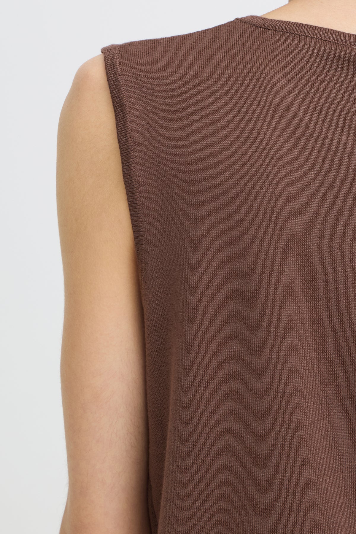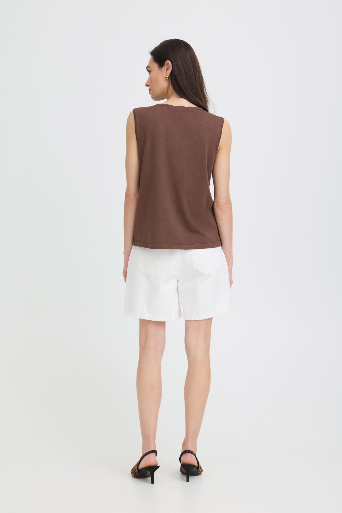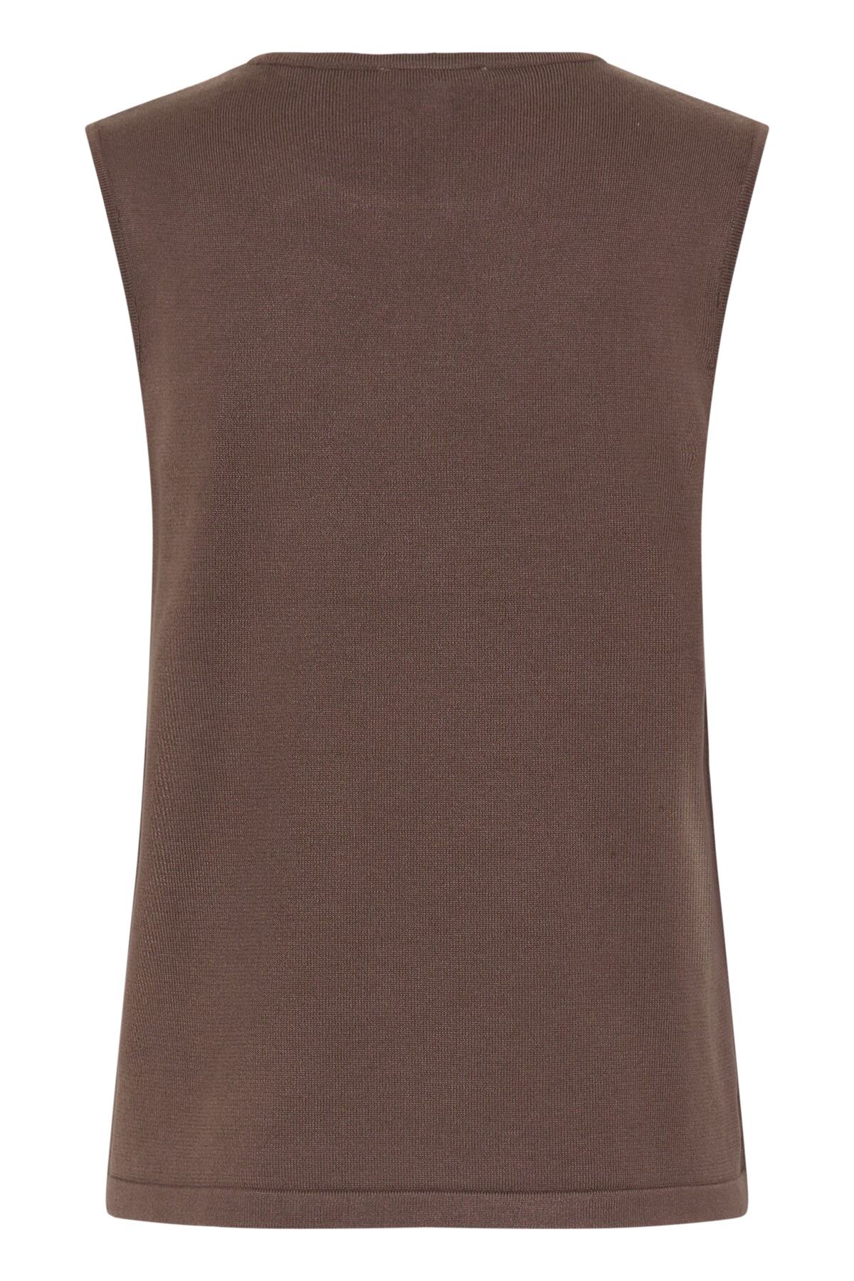 Débardeur en maille fine à encolure ronde et bretelles larges structurées. La coupe droite légèrement trapèze assure un tombé souple et flatteur, tandis que la matière tricotée apporte une touche raffinée qui le distingue du simple basique.