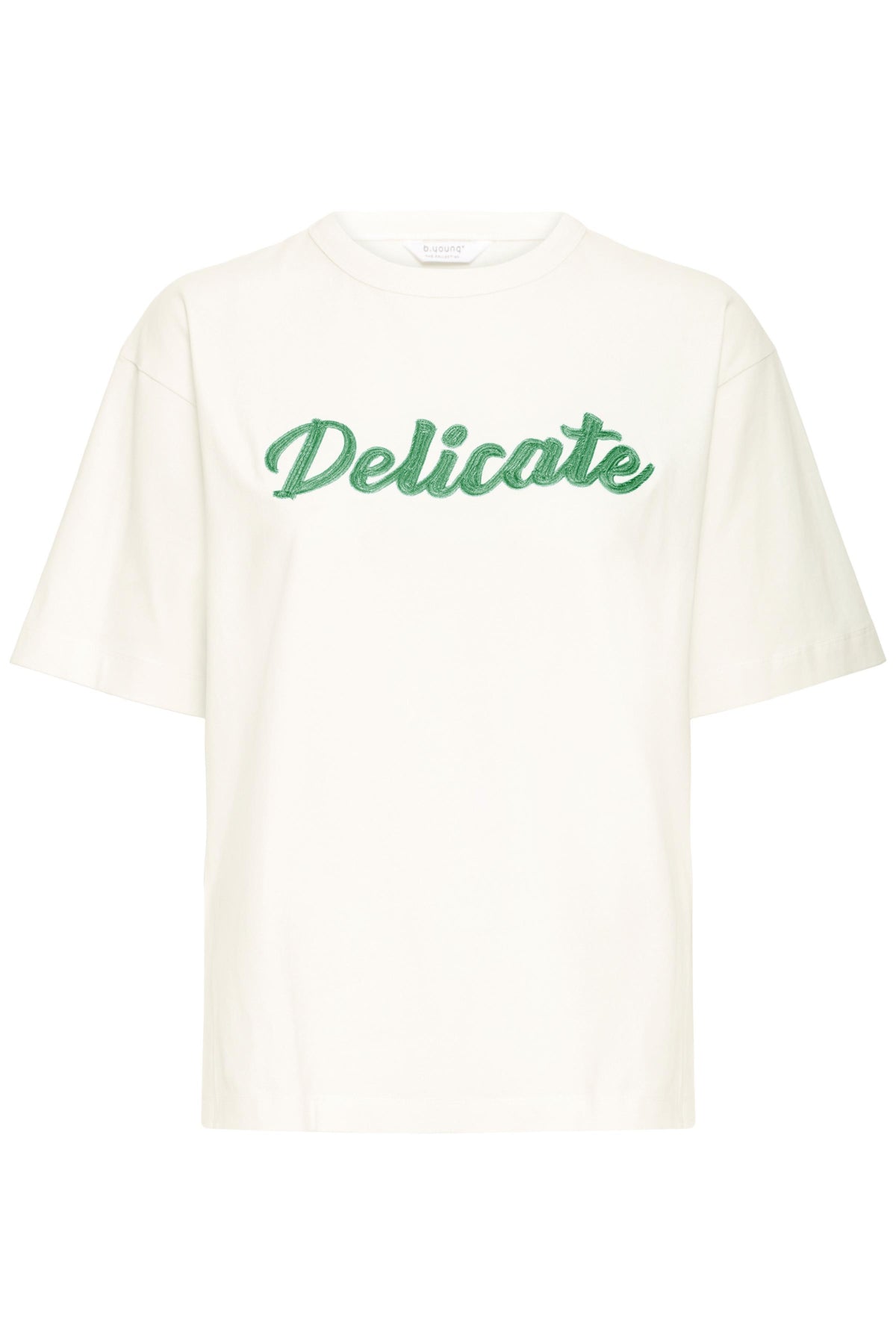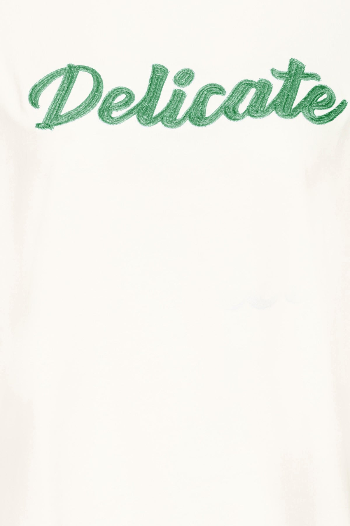 T-shirt Pandinna à col rond et coupe droite, agrémenté de fentes latérales au bas pour plus de confort et de liberté de mouvement. Le devant est orné d'une broderie verte qui apporte une touche d'originalité à ce modèle classique.